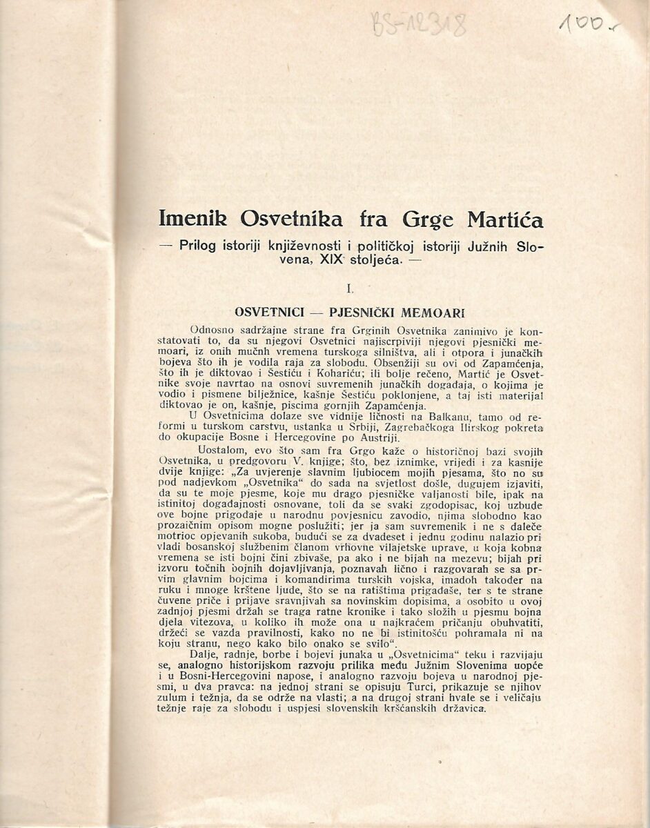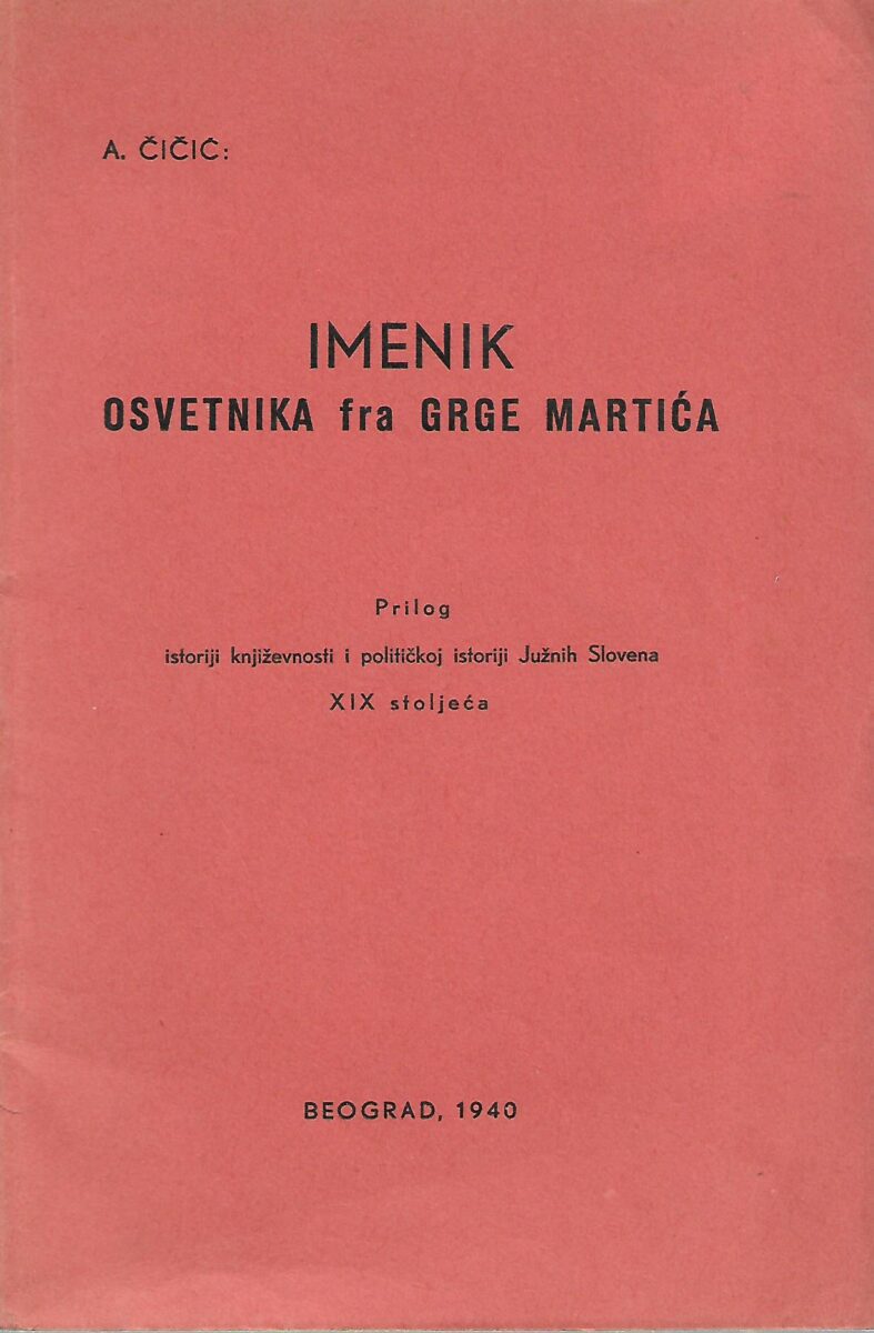 A. Čičić: Imenik osvetnika fra Grge Martića