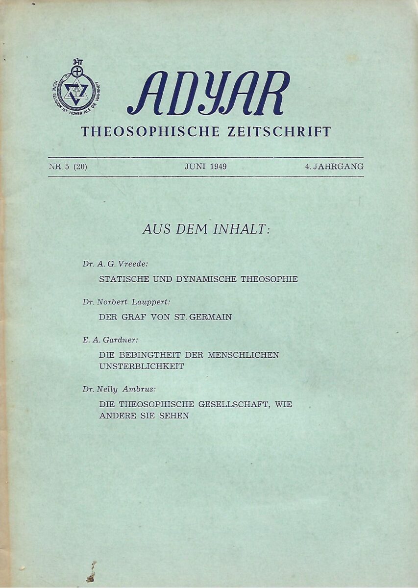 Adyar – Theosophische Zeitschrift /Nr. 5 (20)/4. Jahrgang/1949