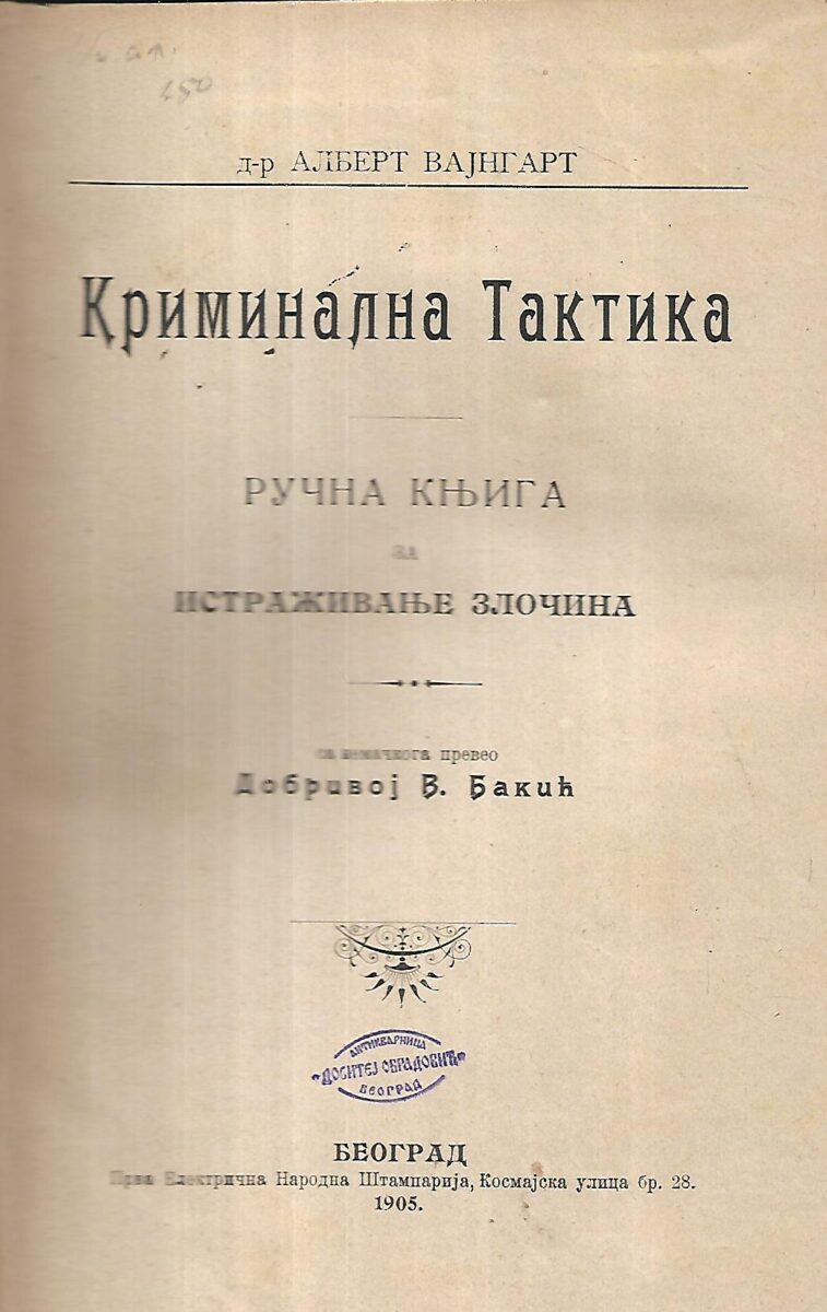 Albert Vajngart: Kriminalna taktika (ćirilica)