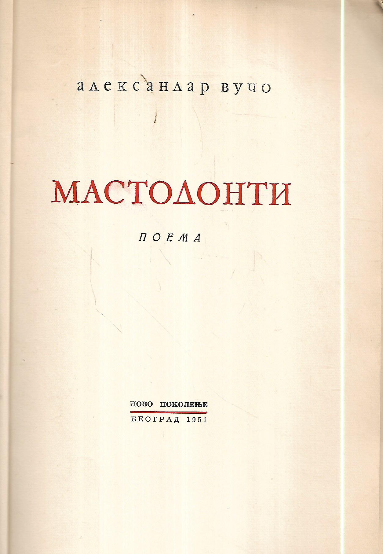Mastodonti je alegorijska poema o borbi protiv fašizma u kojoj je vidljivo vraćanje prvobitnom, vraćanje u prahistorijsku prošlost, među pretpotopna čudovišta, što je karakteristično za Vučovu poeziju nastalu nakon rata.