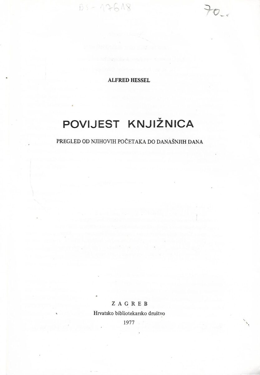 Izdavač i godina: Hrvatsko bibliotekarsko društvo, 1977.