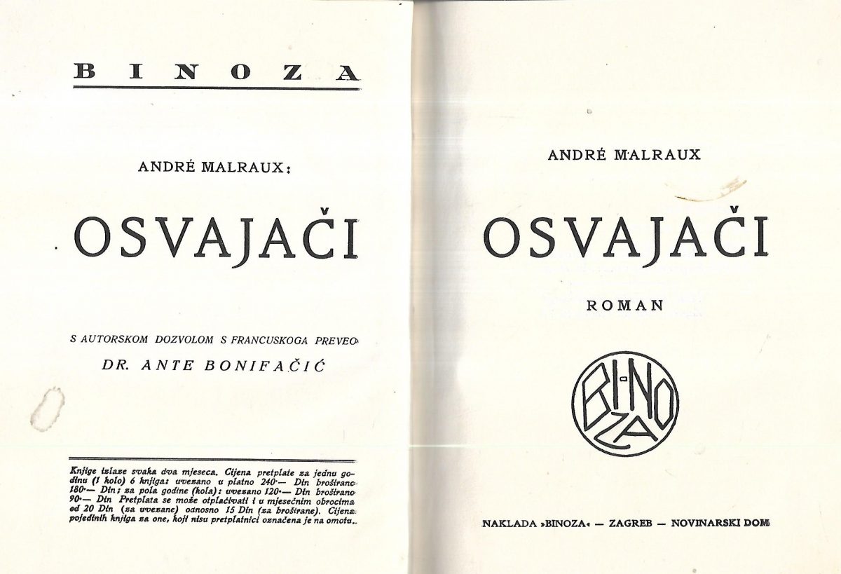 Vrlo rijetko u ponudi s ovitkom. stanje ovitka i knjige – antikvarno vrlo dobro. S autorskom dozvolom s francuskoga preveo Ante Bonifačić.