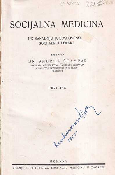 | Izdavač i godina: | IZDANJE INSTITUTA ZA SOCIJALNU MEDICINU U ZAGREBU, 1925. |