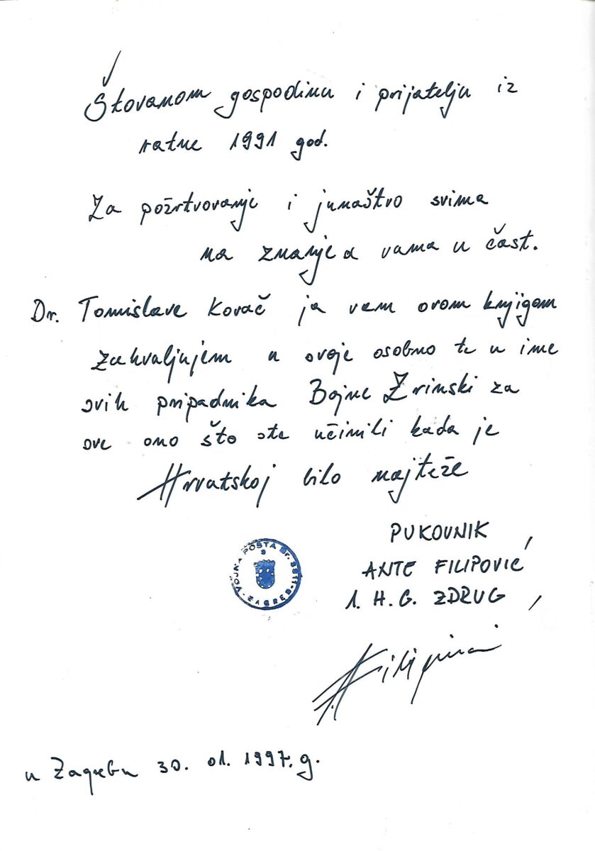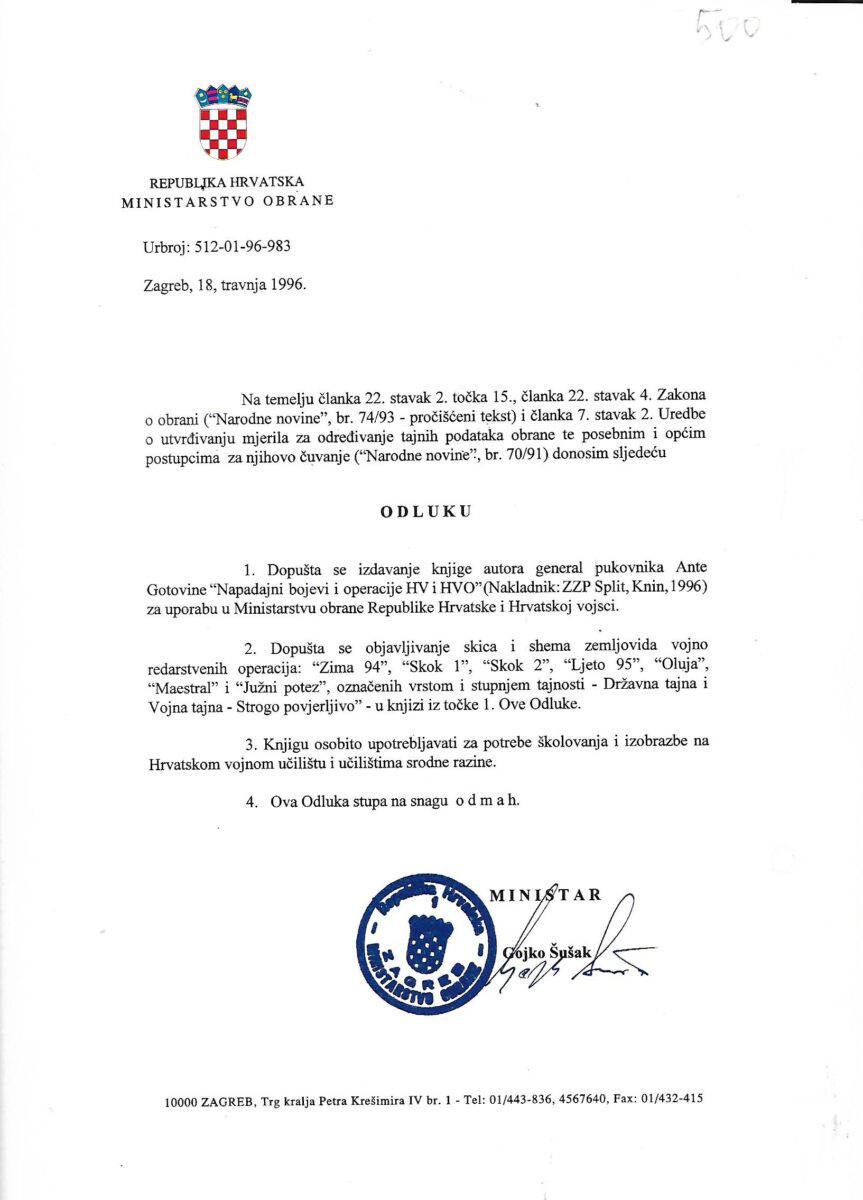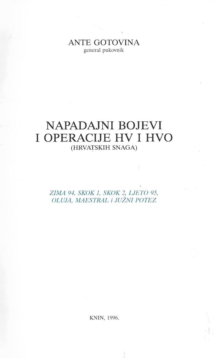 Izdavač i godina: Zapovjedništvo zbornog područja Split, 1996.