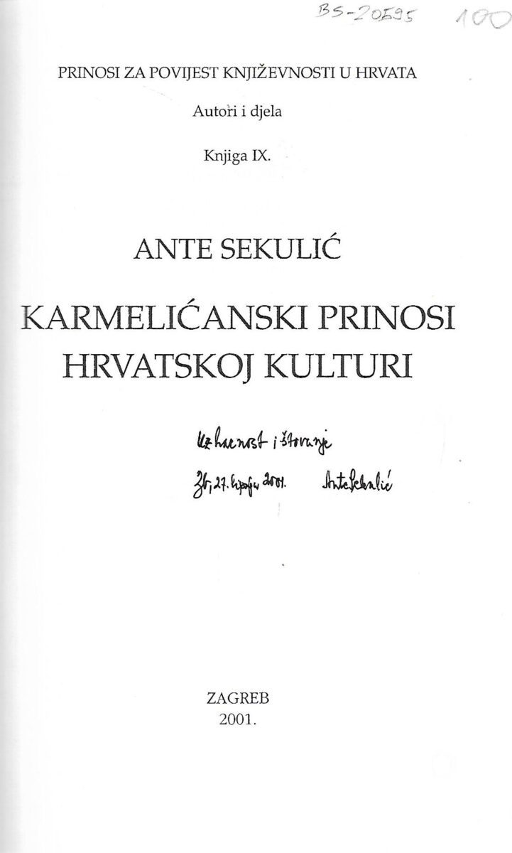 Ante Sekulić: Karmelićanski prinosi hrvatskoj kulturi