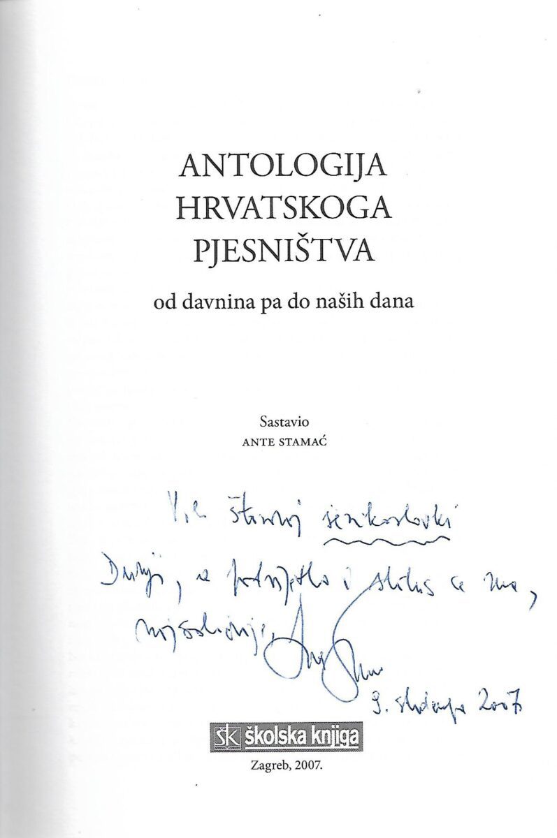 Svaka cjelina počinje uvodnim esejom akademika Stamaća koji pripovijeda o poetici razdoblja i pjesničkim veličinama koje su obilježile pjesničko razdoblje. U Antologiji su uvrštene pjesme 149 autora te pjesme iz Ranjina zbornika i anonimne pjesme iz srednjega vijeka, pa s pravom možemo reći da Antologija pokriva sedamstoljetno hrvatsko pjesništvo od Slavića i Nad grobom pojut do pjesme Delimira Rešickog i Krešimira Bagića.