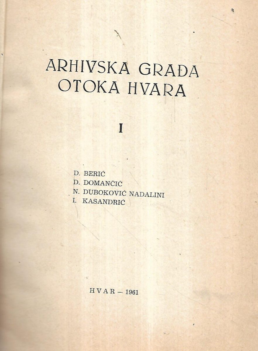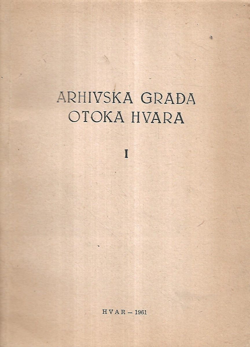 Izdavač i godina: Historijska arhiva- Hvar, 1961.