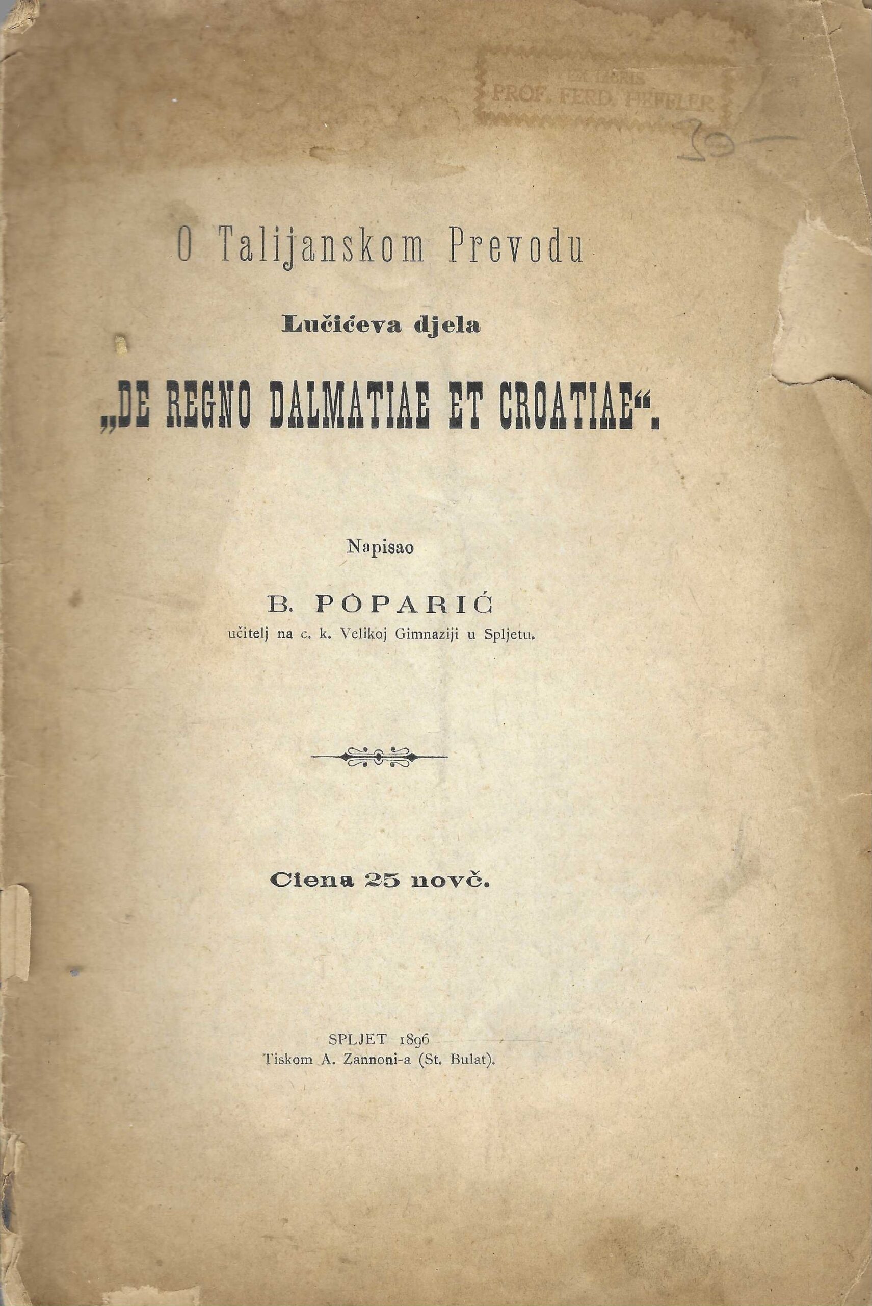 | Izdavač i godina | Tiskom A. Zannoni-a (Stipan Bulat), 1896. |