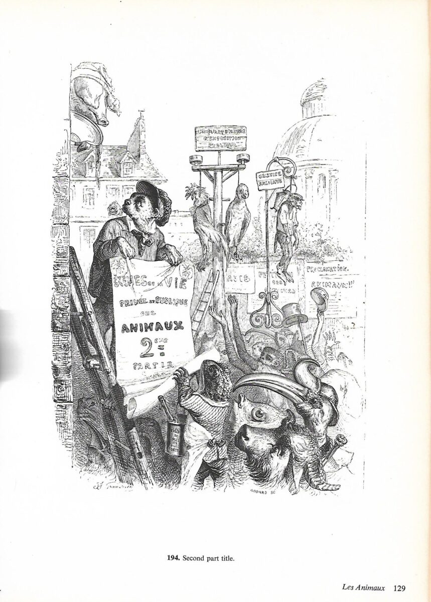 Book illustrations by Jean-Ignace-Isidore Gérard, who adopted the professional name of Grandville. He produced about 3000 illustrations between 1827 and 1847. Bibliography and explanatory notes. Black and white illustrations.