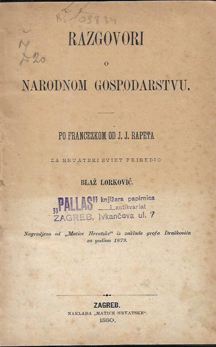 Izdavač i godina: Matica hrvatska, 1880.