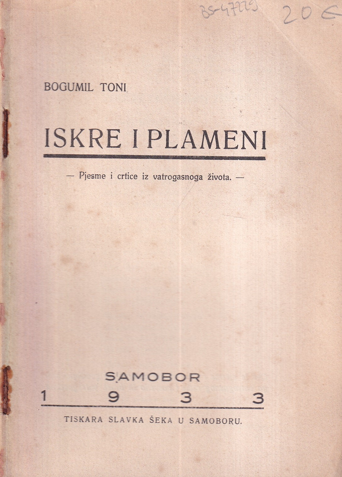 | Izdavač i godina: | TISKARA SLAVENA ŠEKA, 1933. |