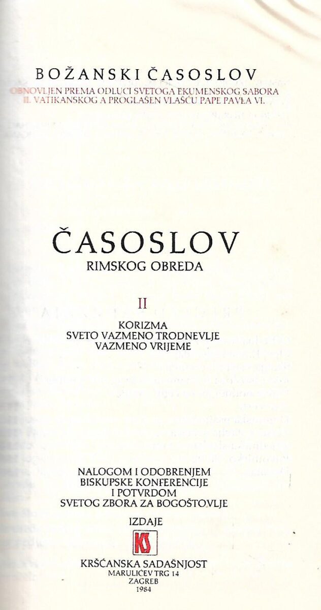 Izdavač i godina: Kršćanska sadašnjost, 1984.