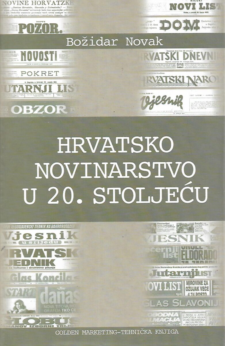 Pregled hrvatskog novinarstva od 1900. g. do 1999 godine kroz analizu sva tri medija (tisak, radio, televizija). Na jednom mjestu autor iznosi obilje pregledno strukturiranih i pouzdanih podataka o razvoju, problemima i ličnostima hrvatskog novinarstva dvadesetog stoljeća.