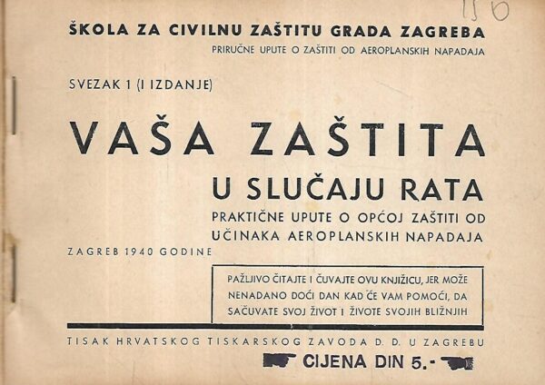 Božo Težak: Vaša zaštita u slučaju rata – praktične upute o općoj zaštiti od učinaka aeroplanskih napada