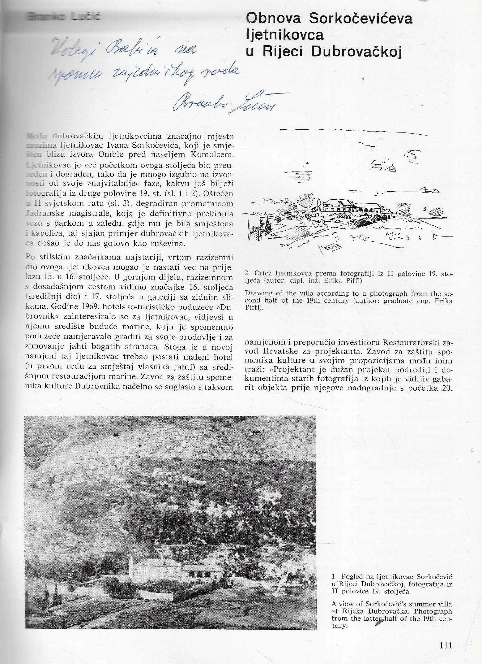 Branko Lučić: Obnova Sorkočevićeva ljetnikovaca u Rijeci Dubrovačkoj (S potpisom autora)