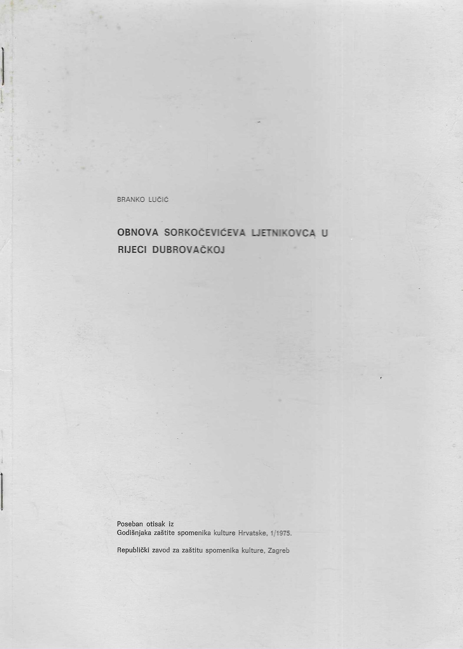 Poseban otisak iz Godišnjaka zaštite spomenika kulture Hrvatske, 1/1975