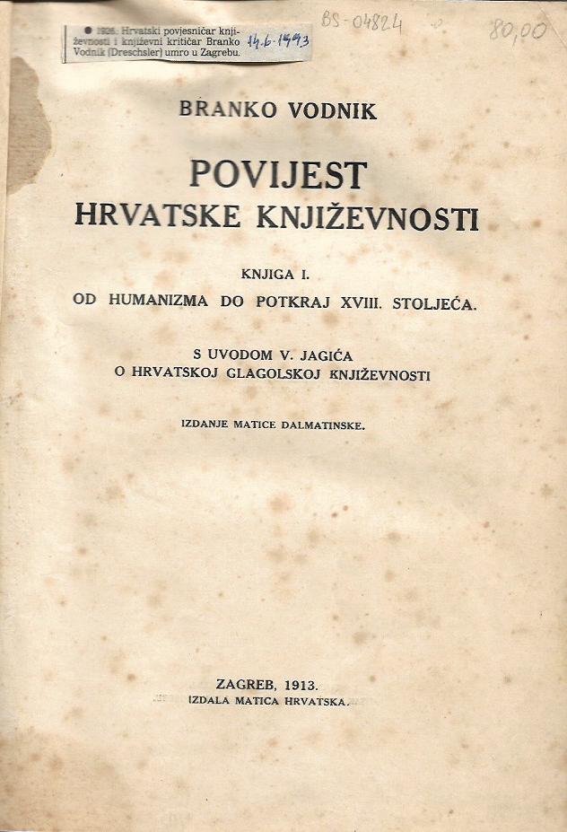 Izdavač i godina: Matica hrvatska, 1913.