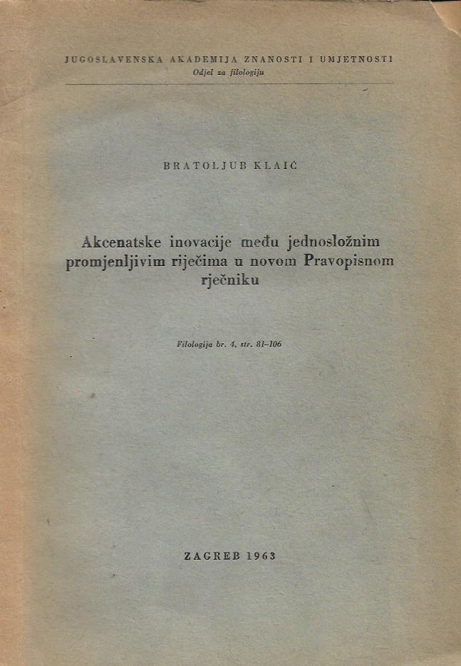Izdavač i godina: Izdavački zavod Jugoslavenske akademije, 1963.