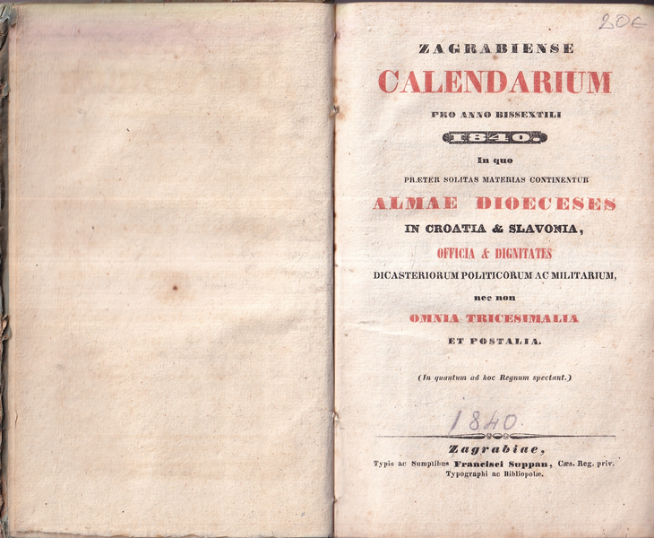 | Izdavač i godina: | FRANCISCI SUPPAN, 1840. |