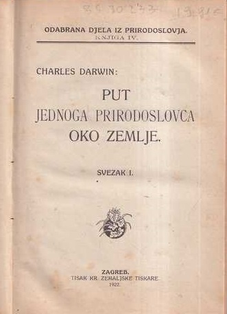 Rijetko prvo hrvatsko izdanje Putovanja Beaglea, jedinog Darwinova djela prevedenog na ovaj jezik, sve do novijeg vremena. Sadašnji prijevod nikada nije dovršen.