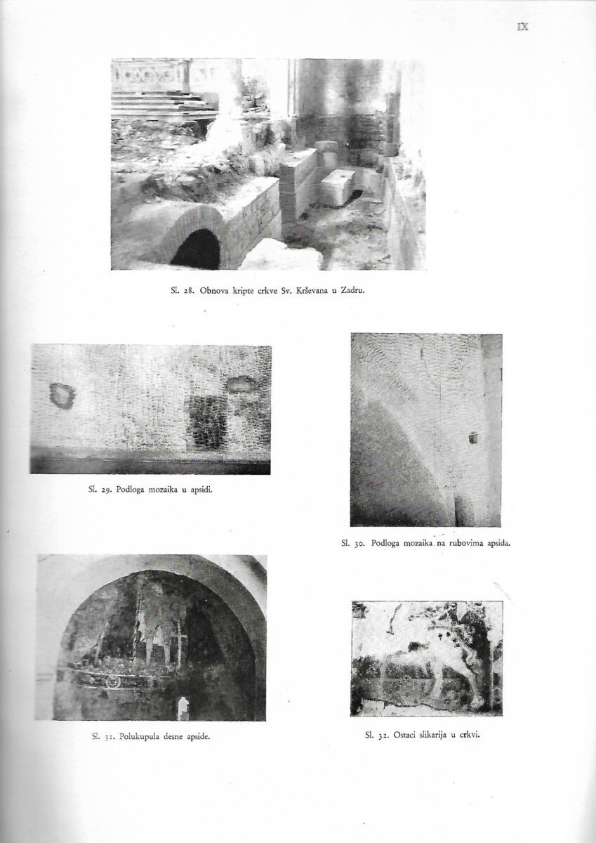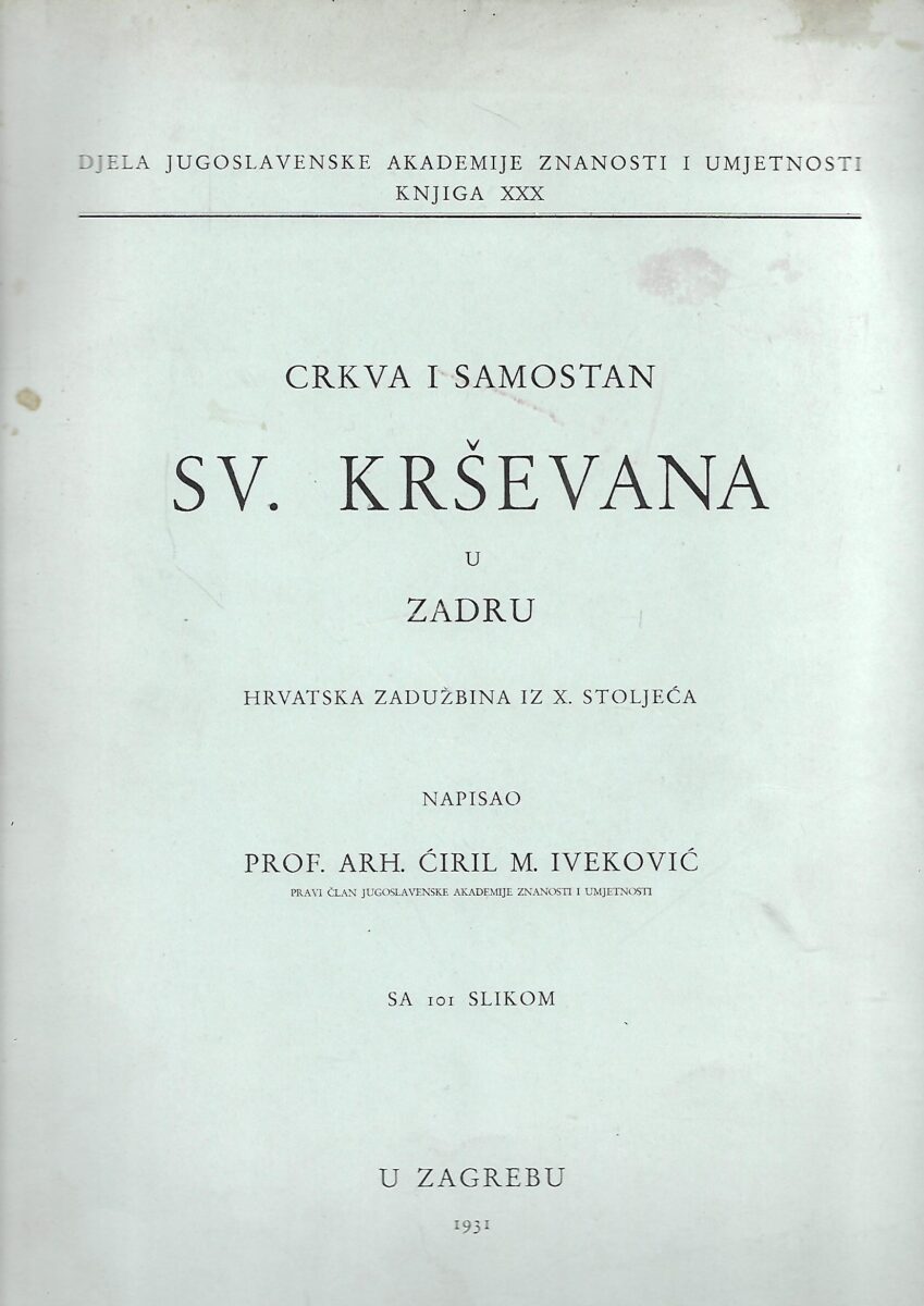 “Crkva Sv. Krševana u Zadru jedan je od onih rijetkih spomenika iz dubokog srednjeg vijeka, koji se, iako često puta mijenjan i pregrađivan, sačuvao u prilično dobrom stanju do danas. Samostan pak, koji je tako usko vezan sa crkvom, nema više gotovo ni traga pređašnjem svojem obliku. Toga radi bavit ćemo se ovdje poglavito crkvom i onim pitanjima, koja se tiče nje i njezinih pregradnja…”