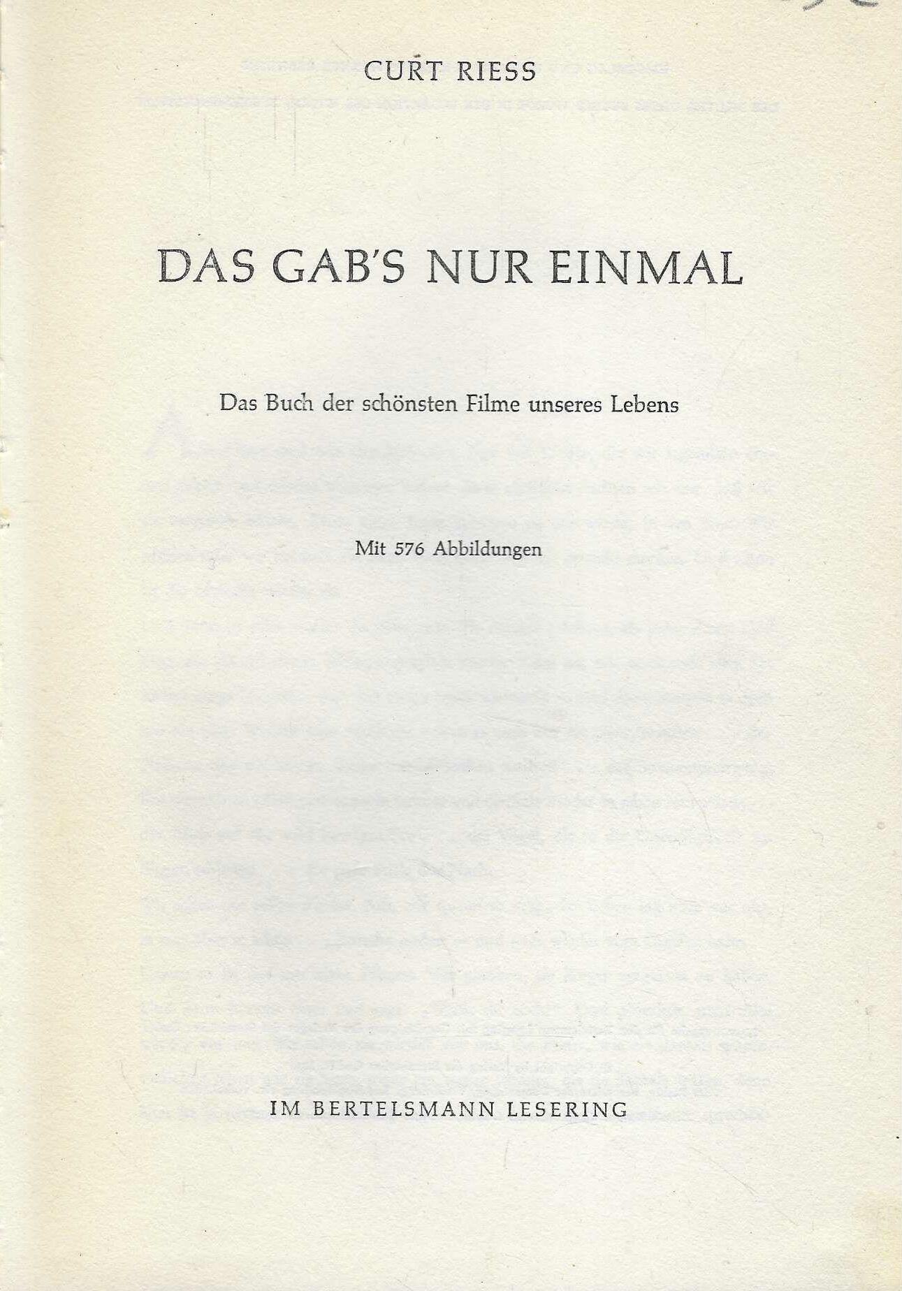 Curt Riess: Das Gab’s Nur Einmal