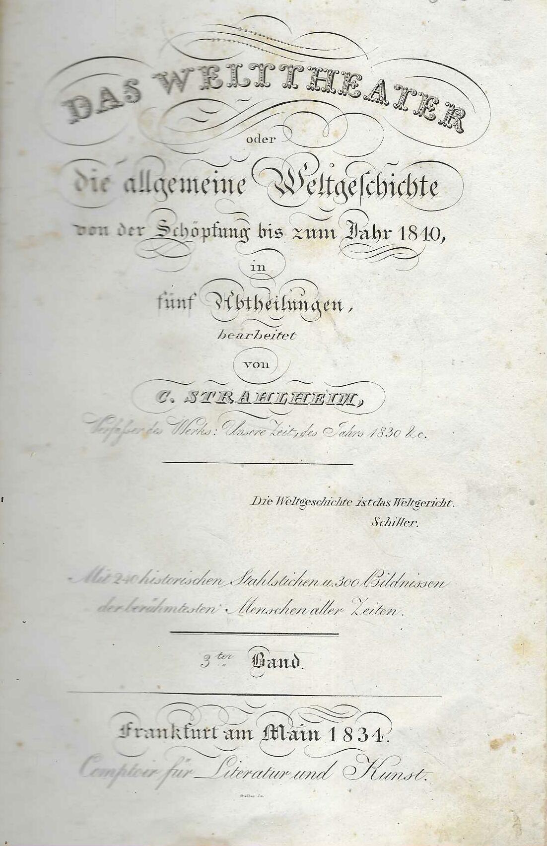 | Izdavač i godina: | Comptoir fur Literatur und Kunst Frankfurt am Main 1834. |