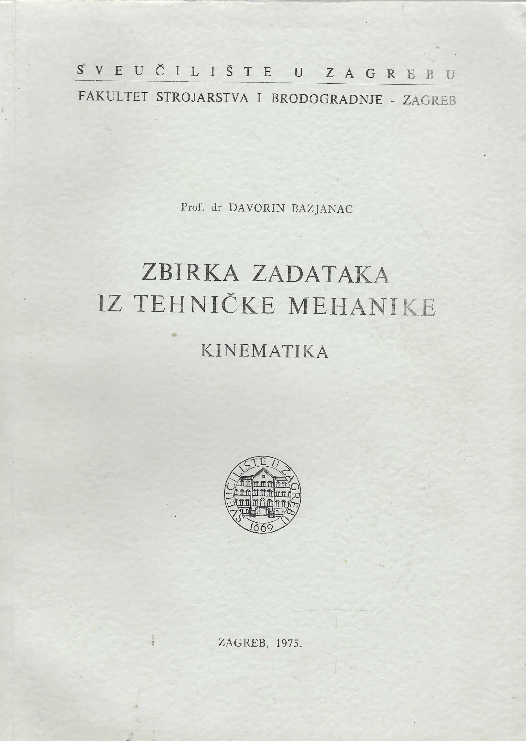 | Izdavač i godina: | FAKULTET STROJARSTVA I BRODOGRADNJE, 1975. |