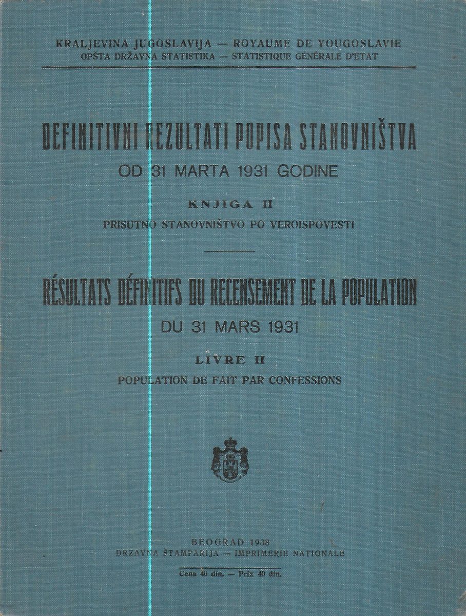 Definitivni rezultati popisa stanovništva od 31.Marta 1931. godine – knjiga II. , prisutno stanovništvo po veroispovesti