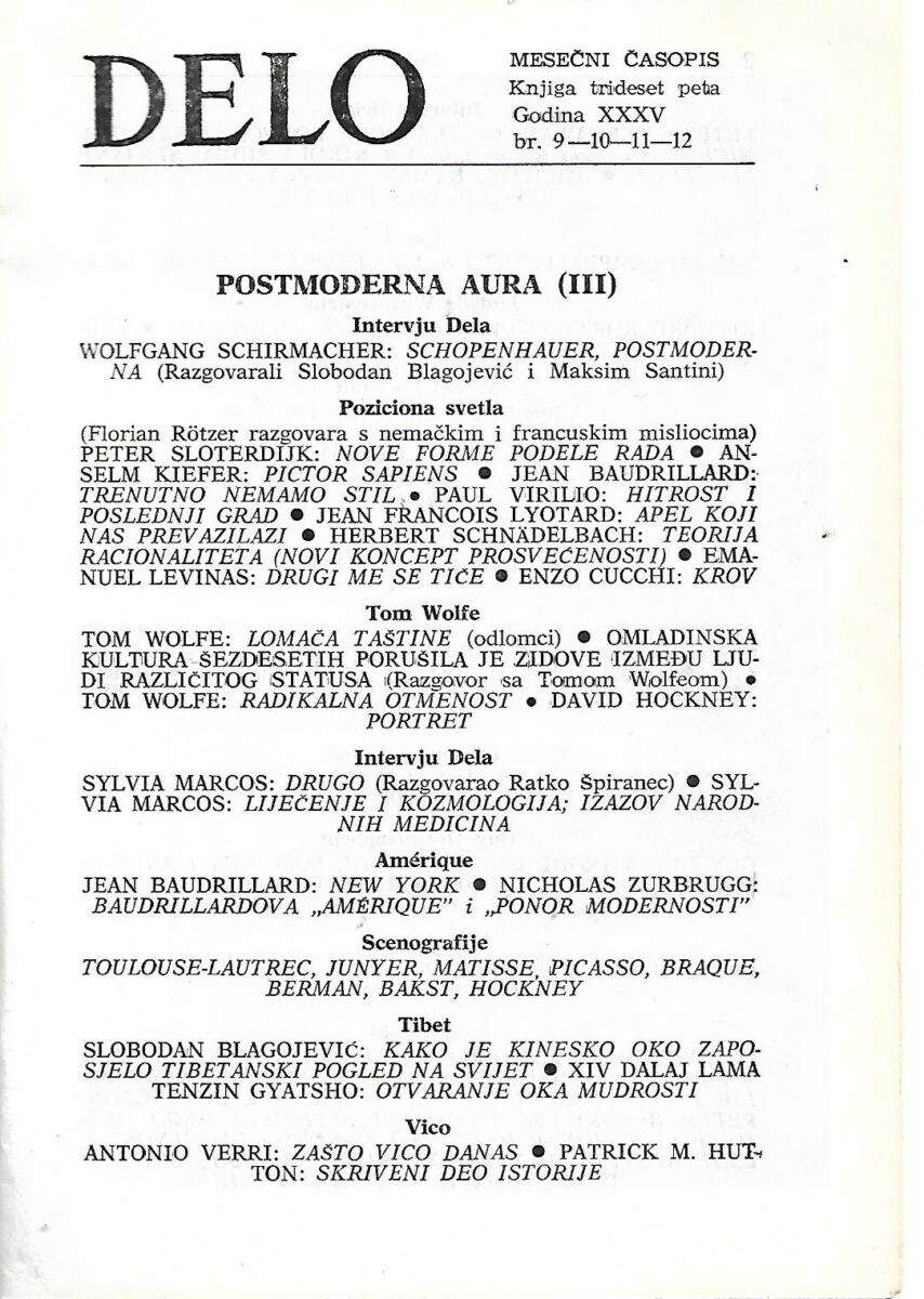 Delo – mesečni časopis, knjiga trideset peta, godina XXXV, br. 9-10-11-12