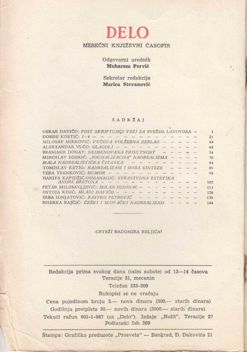 Delo Nadrealizam jučer i danas Januar /1967 Nr .1