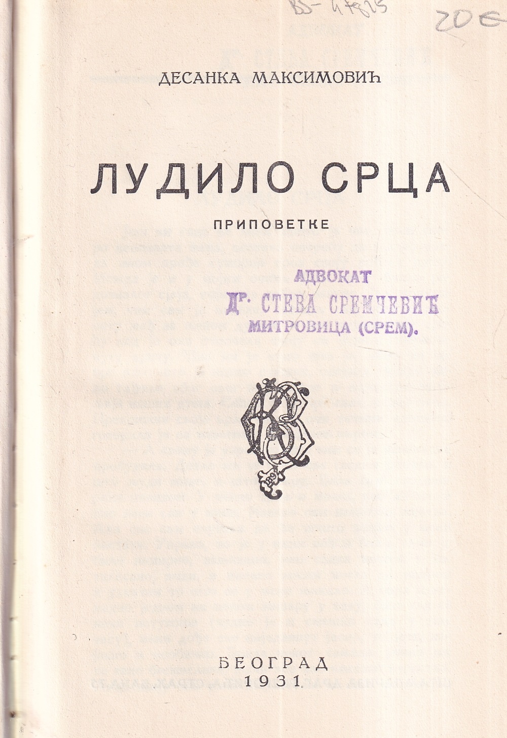 | Izdavač i godina: | 1931. |