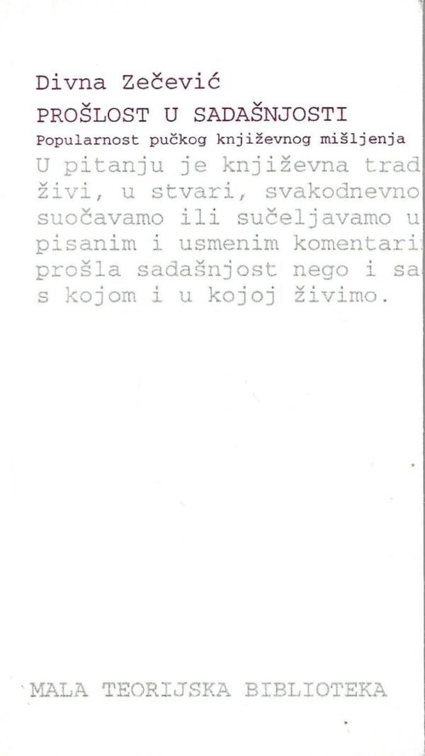 Divna Zečević: Prošlost u sadašnjosti / Popularnost pučkog književnog mišljenja