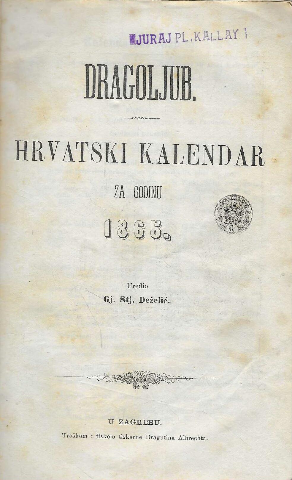 | Izdavač i godina: | Dragutin Albrecht, 1864. |