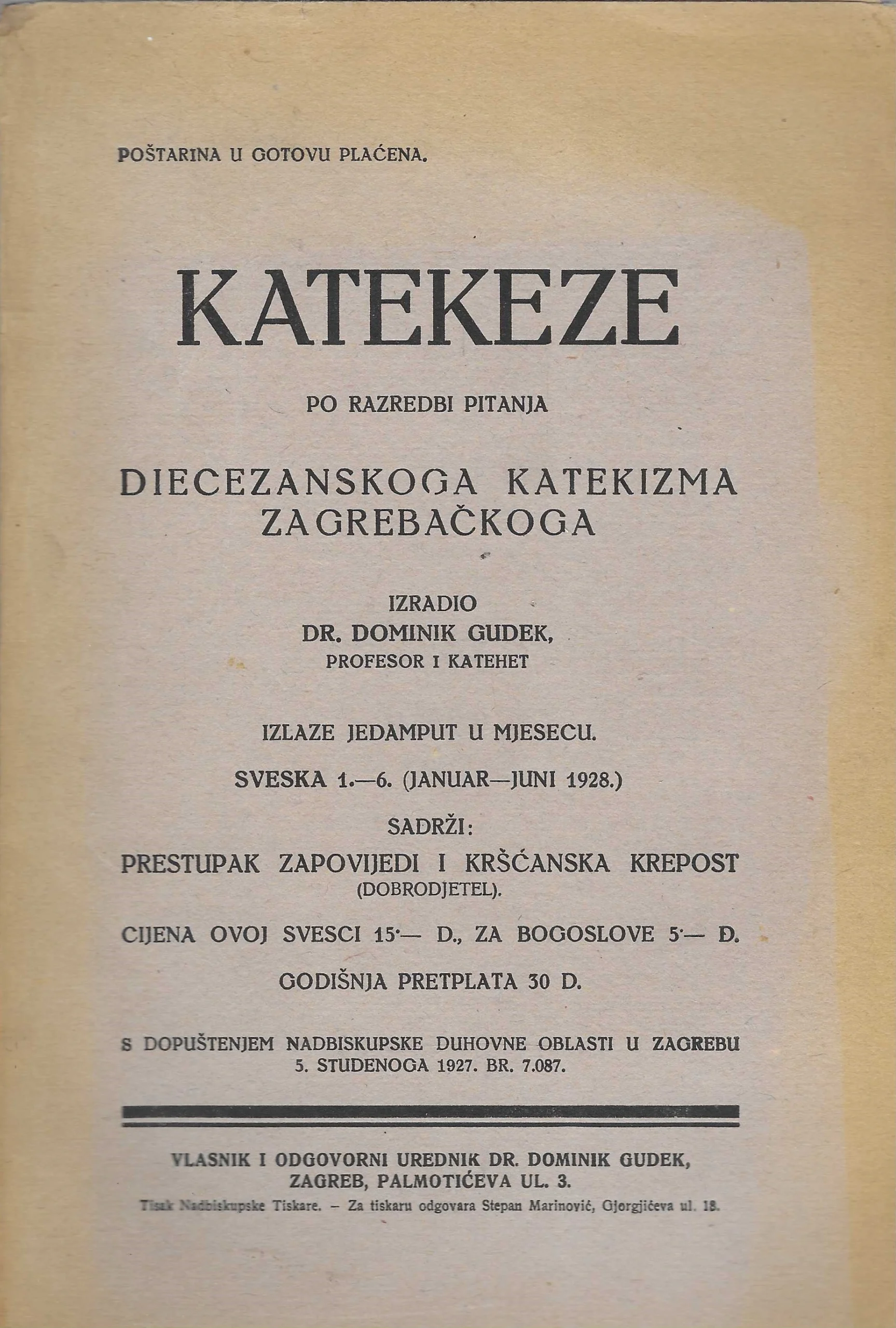 | Izdavač i godina: | vlastita naklada, 1927. |