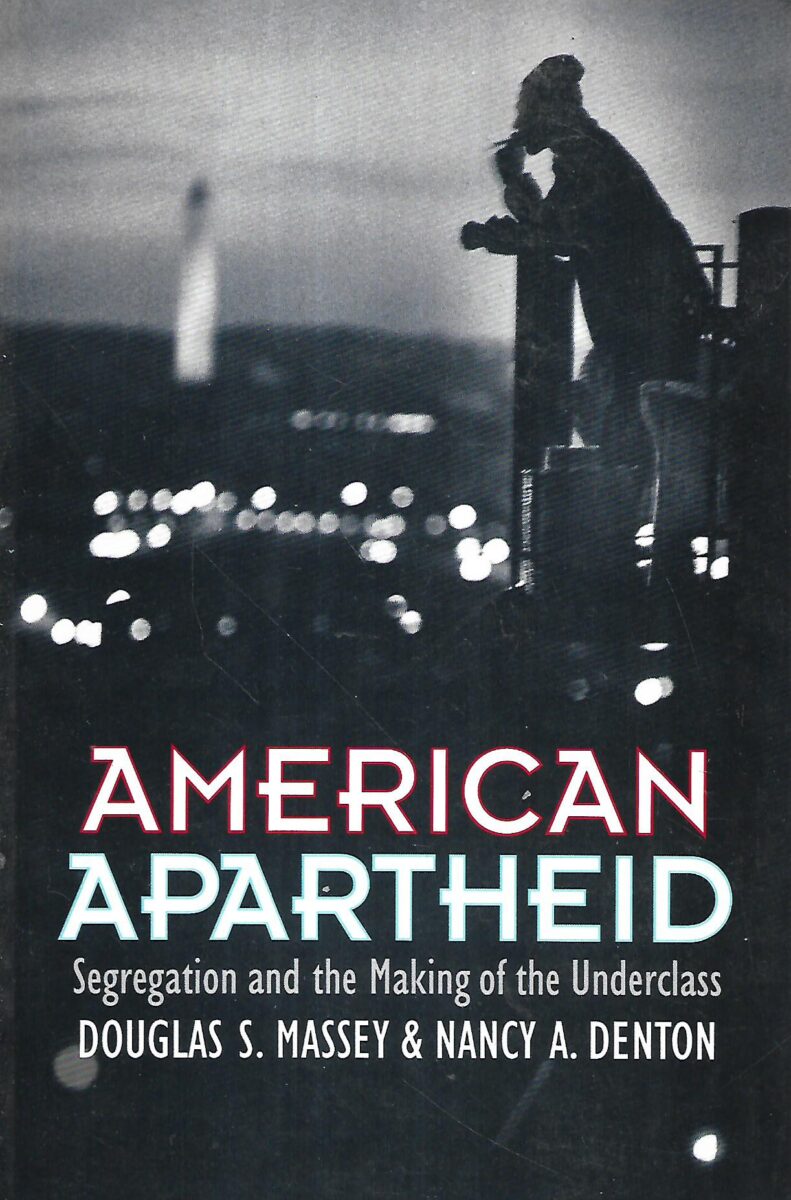 Američki apartheid pokazuje kako su crnački geto stvorili bijelci tijekom prve polovice dvadesetog stoljeća kako bi izolirali rastuću urbanu crnu populaciju. Dalje pokazuje da se, unatoč Zakonu o pravednom stanovanju iz 1968., segregacija danas nastavlja kroz isprepleteni skup pojedinačnih akcija, institucionalnih praksi i vladinih politika. U nekim je urbanim područjima stupanj segregacije crnaca toliko je intenzivan i javlja se u toliko dimenzija istovremeno da se svodi na “hipersegregaciju”.