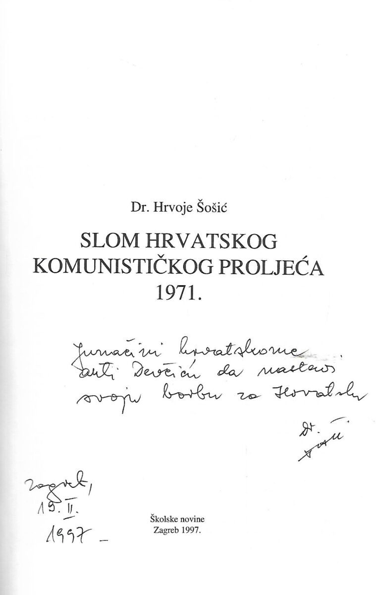dr. Hrvoje Šošić: Slom Hrvatskog komunističkog proljeća 1971.