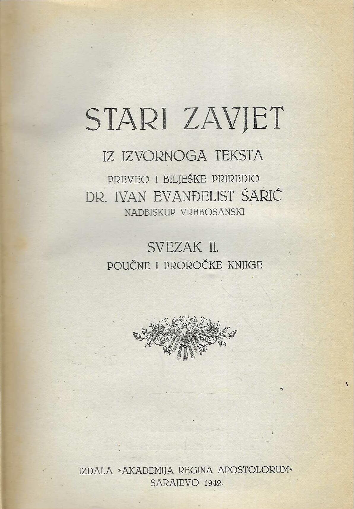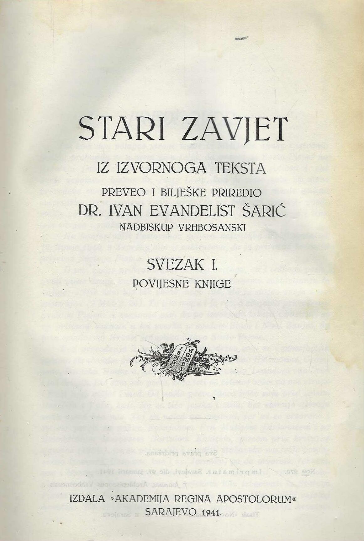 Preveo i bilješke priredio dr. Ivan Evanđelist Šarić, nadbiskup vrhbosanski