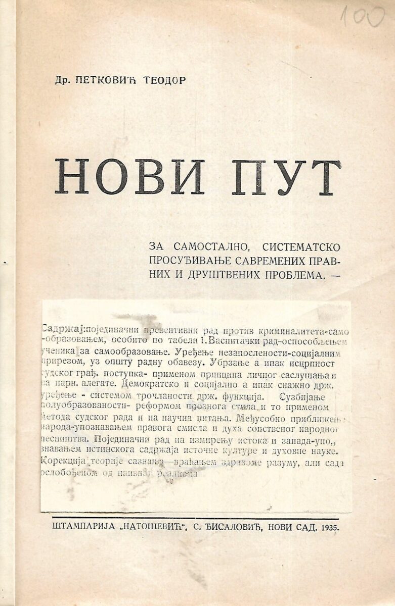 dr.Teodor Petković: Novi put (ćirilica)