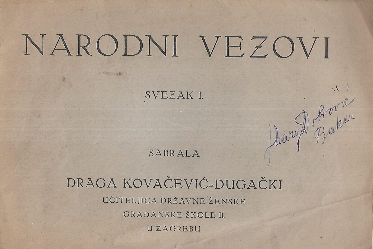 Draga Kovačević-Dugački (prir.): Narodni vezovi Svezak 1-2
