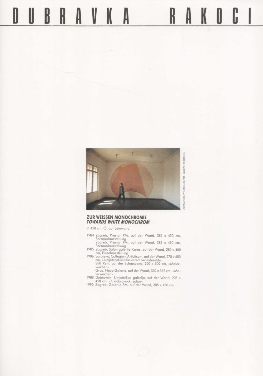 Dubravka Rakoci, katalog izložbe. Zur weissen monochromie towards white monochrom