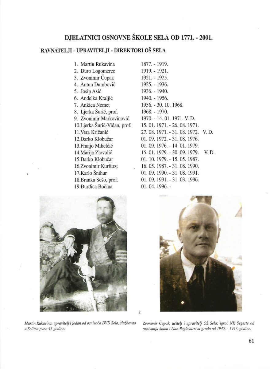 Đurđica Bočina i Antun Barić: Povjesnica osnovne škole Sela i mjesta