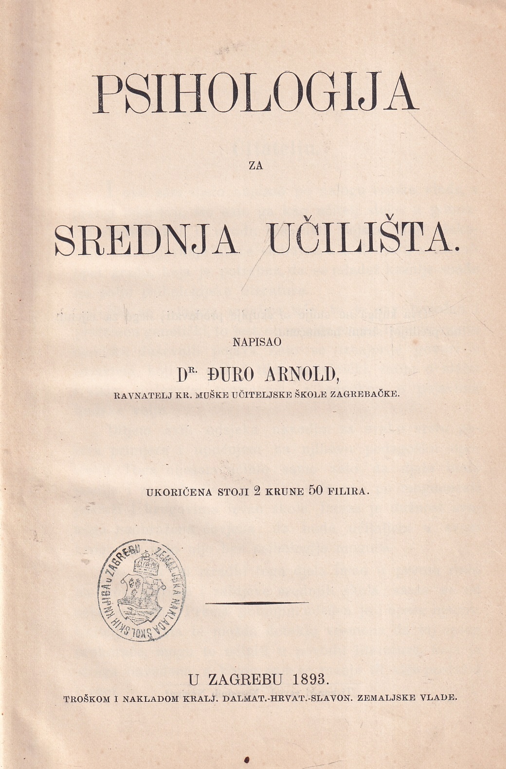 | Izdavač i godina: | KRALJEVSKA DALMATINSKO-HRVATSKO-SLAVONSKA ZEMALJSKA VLADA, 1893. |