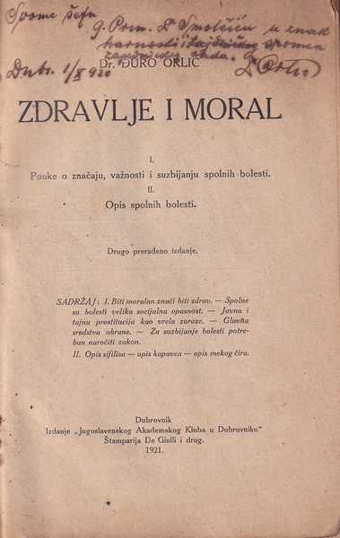 | Izdavač i godina | Jugoslavenski akademski klub u Dubrovniku, 1921. |