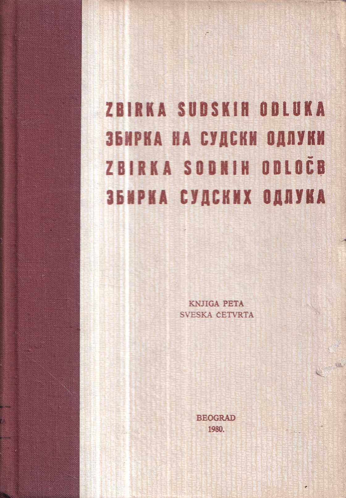 | Izdavač i godina: | REDAKCIJA ZBIRKE SUDSKIH ODLUKA, 1980. |