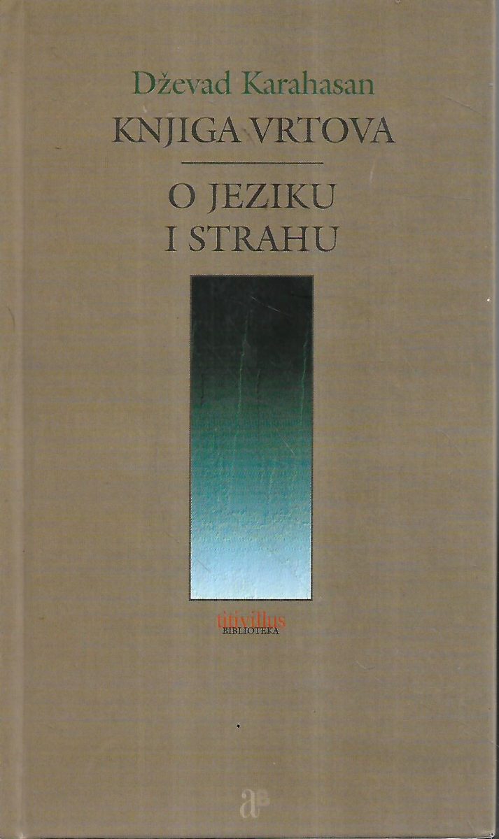 Knjiga vrtova knjiga je eseja nastala kao svojevrsni nastavak eseja O jeziku i strahu s tematikom koja i nadalje opscesionira Karahasana. Neposredna prošlost nužno je interveni-rala u tu tematiku izoštrujući duboku etičku impostiranost prema odnosima kultura, razgovora, različito aspektiranih polazišta u svim njihovim konfrontacijama. Čitak i blizak, ovaj tekst svojevrsni je etički poučak tako nužan ne samo za danas već, nažalost, i za sutra.
