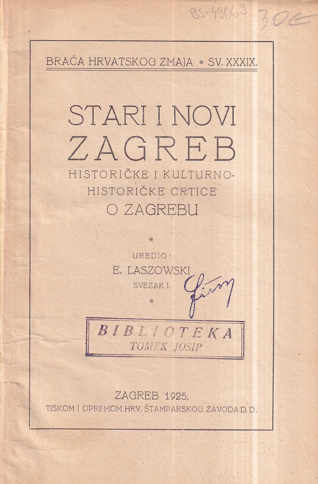 | Izdavač i godina: | HRVATSKI ŠTAMPARSKI ZAVOD, 1925. |