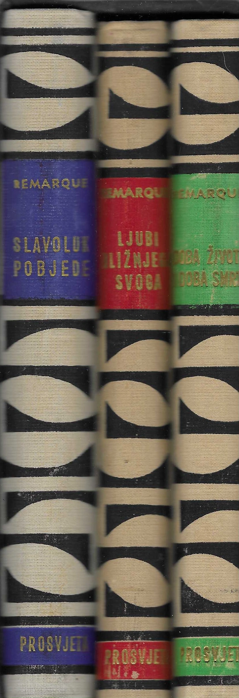 Tri sveska. Erich Maria Remarque (22. juni, 1898. – 25. septembar, 1970.) je pseudonim njemačkog pisca čije je pravo ime Erich Paul Remark. Remarque je postao poznat po nizu djela kojima opisuje strahote rata čiji je sudionik bio i sam. Njegov najpoznatiji roman je Na zapadu ništa novo (objavljen u nastavcima 1928. a kao knjiga početkom 1929. godine), u kojem opisuje život njemačkih vojnika koji se tokom Prvog svjetskog rata bore na zapadnom frontu (francusko ratište). Na osnovu ovog filma snimljen je i oskarom nagrađeni film. Ovo djelo mu donosi neprijateljstvo nacista, koji zabranjuju i pale mnoga njegova djela. 1933. godine Nacisti zabranjuju njegova djela i vrše zapljenu istih. Paralelno s tim kreću s propagandom kako je Remarque ustvari porijeklom francuski jevrej i da je njegovo pravo ime Kramer (što dobijemo u slučaju da izgovaramo prezime Remark unatrag). I u današnje vrijeme, u pojedinim biografijama ovog pisca stoji ova tvrdnja, sa već navedenim primjerom kao dokazom. Poznatija djela: Na zapadu ništa novo (Im Westen nichts Neues) – 1929 Povratak (Der Weg zurück) – 1931 Tri ratna druga (Drei Kameraden) – 1938 Ljubi bljižnjeg svog (Liebe deinen Nächsten) – 1941 Trijumfalna kapija (Arc de Triomphe) – 1946 Iskra života (Der Funke Leben) – 1952 Vrijeme života i vrijeme smrti (Zeit zu leben und Zeit zu sterben) – 1954 Crni obelisk (Der schwarze Obelisk) -1956 Nebo ne zna za miljenike (Der Himmel kennt keine Günstlinge) – 1961 Noć u Lisabonu (Die Nacht von Lissabon) – 1963 Sjenke u raju (Schatten im Paradies) – posthumno objavljeno 1971