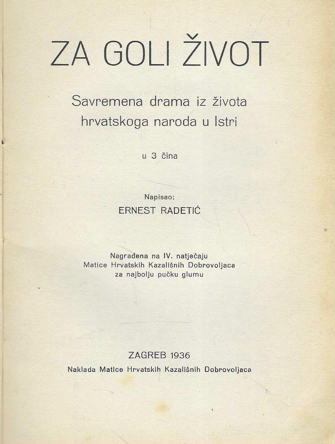 | Izdavač i godina: | Naklada Matice Hrvatskih Kazališnih Dobrovoljaca, Zagreb, 1936. |