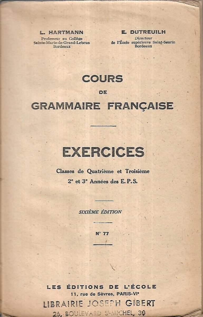 Cours de grammaire Francaise, Exercises, Classe de Sixieme de Cinquieme, Classe Preparatoire aux E.P.S. – 1re Anne d’E.P.S., Classes de fin d’Etudes Primaires